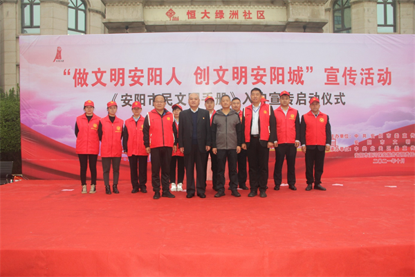 10月9日上午,由公司承辦的,安陽“做文明安陽人 創(chuàng)文明安陽城”宣傳活動暨《安陽市民文明手冊》入戶宣傳啟動儀式,在恒大綠洲新時代文明實踐站舉行。市委常委、宣傳部部長、副市長薛崇林,市人大常委會副主任張玲,市政協(xié)副主席李志弘,市委宣傳部副部長、市文明辦主任車俊朝,北關(guān)區(qū)委副書記、區(qū)長路錄平,北關(guān)區(qū)委常委、宣傳部長、副區(qū)長王洪忠,各級文明單位代表、社區(qū)代表、北關(guān)區(qū)志愿者代表,群眾代表參加儀式,儀式由車俊朝主持。公司黨委委員、副總經(jīng)理魏東帶領(lǐng)28名志愿者參加此次活動。