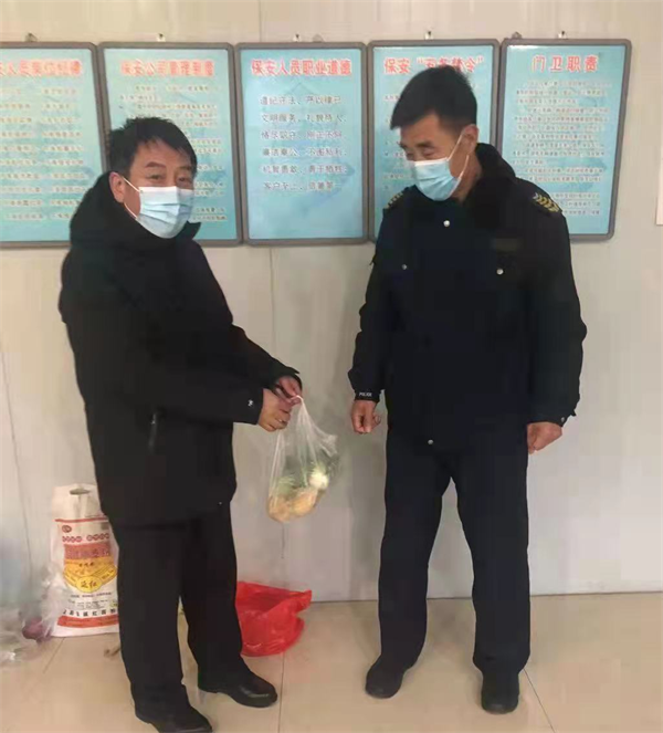 1月10日,因?yàn)橐咔榉揽?,公?wù)倉的兩名隊(duì)員被隔離在崗位上。中隊(duì)長(zhǎng)程永明得知情況后很是擔(dān)心隊(duì)員們的生活,害怕隊(duì)員們?nèi)甜嚢ゐI,于是他連夜從家中拿些生活用品送到公務(wù)倉崗點(diǎn)隊(duì)員手中,囑咐他們安心工作。隨后的日子里程永明定時(shí)把生活用品送到崗點(diǎn),隊(duì)員們看到領(lǐng)導(dǎo)的關(guān)心,非常感動(dòng),他們表示讓分公司領(lǐng)導(dǎo)放心,一定保護(hù)好客戶的財(cái)產(chǎn)安全。