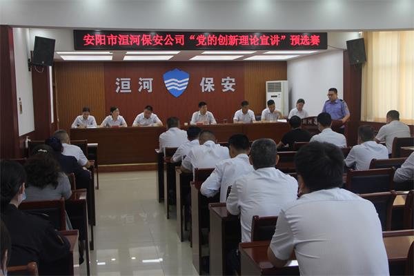 為深入學(xué)習(xí)貫徹習(xí)近平新時(shí)代中國(guó)特色社會(huì)主義思想和黨的十九大及歷次全會(huì)精神,推動(dòng)黨的創(chuàng)新理論入腦入心,團(tuán)結(jié)引領(lǐng)廣大職工堅(jiān)定跟黨走、建功新時(shí)代,激勵(lì)全體洹河保安人以更加昂揚(yáng)的精神狀態(tài)迎接黨的二十大勝利召開(kāi),2022年5月19日下午,公司黨委舉辦“黨的創(chuàng)新理論宣講”預(yù)選賽,黨委書(shū)記、董事長(zhǎng)、總經(jīng)理王高峰,黨委委員、副總經(jīng)理魏東到會(huì)觀摩,比賽由黨委副書(shū)記張錫軍主持。