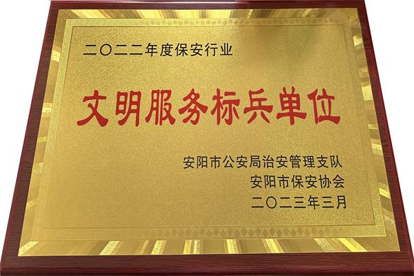 5月30日下午,安陽市保安協(xié)會召開2022年度總結(jié)表彰大會,公司被評為“安陽市保安行業(yè)文明服務(wù)標(biāo)兵單位”,其中公司守押一大隊(duì)、華潤燃?xì)庥邢薰颈0矋彽?個崗點(diǎn)被安陽市保安協(xié)會評為“文明示范崗”,公司楊國慶、李志勇等17名同志被安陽市保安協(xié)會評為“優(yōu)秀保安員”,公司張運(yùn)洲同志榮獲安陽市保安協(xié)會“喜迎黨的二十大 保安護(hù)航新征程”征文比賽一等獎。