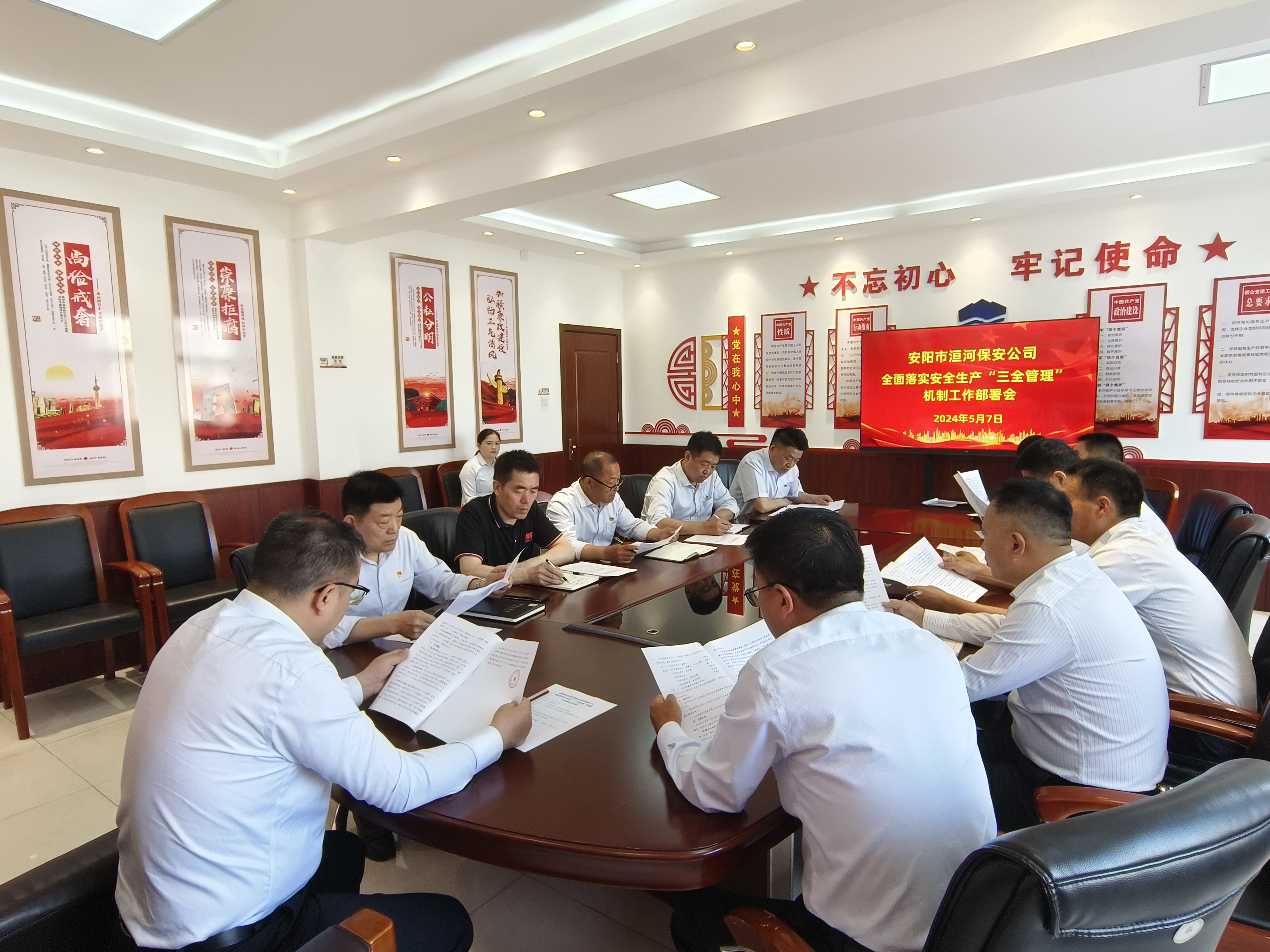 會上,孫國濤傳達了《安陽市洹河保安服務(wù)有限責(zé)任公司關(guān)于全面落實安全生產(chǎn)“三全管理”機制的工作方案》。