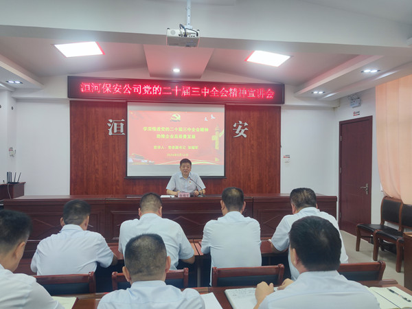宣講會上,張錫軍從深刻認(rèn)識黨的二十屆三中全會的重大意義、準(zhǔn)確把握黨的二十屆三中全會的主要內(nèi)容和精神實質(zhì) 、強(qiáng)化保安工作與全會精神的深度融合、深入貫徹全會精神開創(chuàng)工作新局面、以全會精神為引領(lǐng)推動企業(yè)高質(zhì)量發(fā)展等方面,結(jié)合保安企業(yè)改革發(fā)展,為黨員干部帶來了一場精彩生動、內(nèi)容豐富的專題宣講。