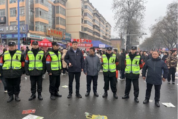廟會當日清晨4時,全體執(zhí)勤人員頂風冒雨、不畏嚴寒,準時到崗到位。公司領導班子深入重點區(qū)域督導檢查;執(zhí)勤隊員積極配合交管部門開展交通管控、疏導人流車流、保障應急通道暢通,加密重點區(qū)域巡邏頻次,及時勸阻違規(guī)行為,全力維護現場秩序。
