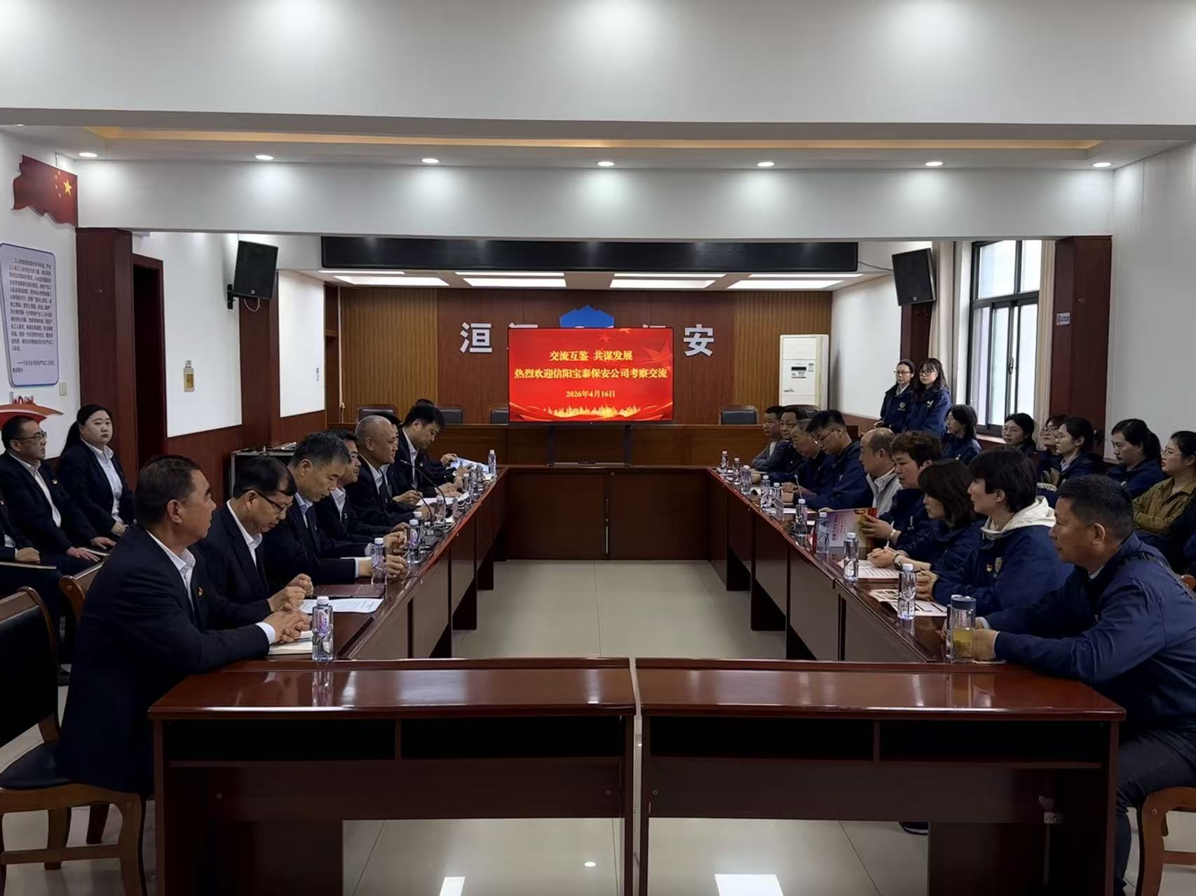 4月16日,信陽寶泰保安公司董事長兼總經(jīng)理李慧成帶領(lǐng)業(yè)務(wù)骨干一行到訪洹河保安公司,圍繞核心安保業(yè)務(wù)、隊伍規(guī)范化建設(shè)及黨建賦能發(fā)展等方面開展深度交流座談,洹河保安公司領(lǐng)導班子參加活動。