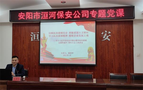 為了弘揚偉大抗美援朝精神,銘記歷史、致敬英雄,引導廣大黨員干部傳承革命精神,牢記初心使命,勇于擔當作為。由于當前處于疫情防控期,2021年1月12日下午,在公司南二樓會議室,黨委錄制了專題黨課視頻,黨課以《回顧抗美援朝歷史 厚植愛國主義情懷 學習抗美援朝精神 熔鑄企業(yè)發(fā)展之魂》為主題,由第三黨支部書記聶紹軍同志講授,要求各黨支部充分利用微信工作群、學習強國云盤等網(wǎng)絡(luò)平臺,通過集中學習或自主學習形式動員廣大黨員收看,并做好黨課筆記。
