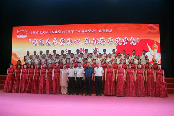 為慶祝中國(guó)共產(chǎn)黨成立100周年,重溫黨的光輝歷史,謳歌黨的光輝業(yè)績(jī),贊美偉大的祖國(guó),5月26日下午,北關(guān)區(qū)隆重舉辦慶祝建黨100周年“永遠(yuǎn)跟黨走”系列活動(dòng)——“頌黨恩永葆初心,沐歌海共筑夢(mèng)想”紅歌賽展演。來(lái)自北關(guān)區(qū)不同單位的 15支參賽隊(duì)伍參加比賽,公司合唱曲目《在燦爛陽(yáng)光下》榮獲一等獎(jiǎng)。北關(guān)區(qū)委常委、宣傳部長(zhǎng)徐令輝等領(lǐng)導(dǎo)和專(zhuān)家參加活動(dòng),向獲獎(jiǎng)單位頒獎(jiǎng)。公司黨委書(shū)記、董事長(zhǎng)、總經(jīng)理王高峰與會(huì),并向獲獎(jiǎng)單位頒獎(jiǎng)。