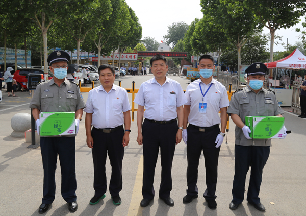 6月7日上午,2021年普通高校招生全國統(tǒng)一考試正式開考,公司黨委書記、董事長、總經(jīng)理王高峰,黨委副書記、工會主席張錫軍分別帶隊巡視市區(qū)高考考點安保工作,同時慰問執(zhí)勤保安員。王高峰指出,要強化責任擔當,周密部署、科學調(diào)度、協(xié)同配合,統(tǒng)籌做好疫情防控防控和安保工作,確保高考期間公司負責安保的各考點的安全有序。公司領(lǐng)導高代獻、魏東、楊克忠一同參加。