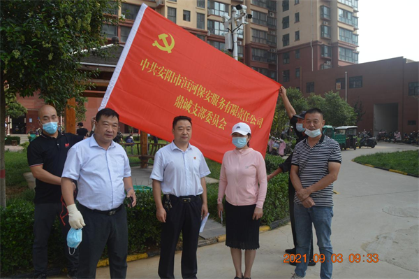 9月3日,安陽(yáng)鼎誠(chéng)物業(yè)服務(wù)有限公司組織全體黨員、預(yù)備黨員、入黨積極分子,抽調(diào)各項(xiàng)目綠化人員、技術(shù)骨干、行政管理人員100多人,冒著雨后的炎熱,開(kāi)赴安陽(yáng)西南部,會(huì)戰(zhàn)金鼎園。