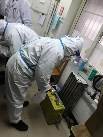 演練中,大隊(duì)模擬接到中國(guó)銀行通知,需要到人民醫(yī)院接收錢款勤務(wù)。大隊(duì)出勤人員首先進(jìn)行消毒穿戴防護(hù)服,完成消毒程序后車輛出車,到達(dá)人民醫(yī)院和銀行工作人員嚴(yán)格按照消毒程序?qū)钕溥M(jìn)行交接,隨后將款箱押至規(guī)定地點(diǎn),車輛回隊(duì)后再按照程序進(jìn)行消毒交接。