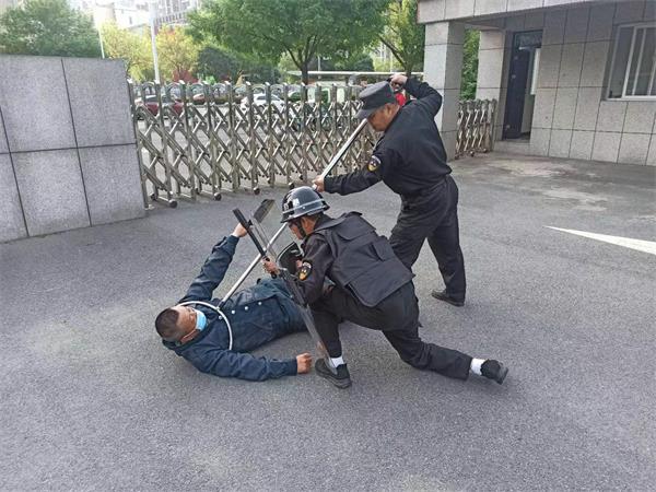 為做好這次防恐預(yù)案演練,人防一大隊(duì)領(lǐng)導(dǎo)和郵局保安班隊(duì)員一起,對(duì)預(yù)案方案進(jìn)行了細(xì)化,從場(chǎng)景設(shè)置到人員安排,從道具準(zhǔn)備到過程節(jié)點(diǎn)把握都做了詳細(xì)安排和部署。4月13號(hào)上午8點(diǎn),郵局保安班一場(chǎng)外來人員到郵局機(jī)關(guān)大院鬧事防恐演練開始,保安員正在值班中間,從外面進(jìn)來兩名陌生人員想進(jìn)入大院,其中一名保安隊(duì)員上前詢問兩名陌生人員辦什么事,兩名陌生人員突然從身上掏出兇器,就要強(qiáng)行闖卡。保安見情況不妙,馬上用對(duì)講機(jī)呼喊隊(duì)員帶防爆器材過來,這期間,這兩名陌生人員拿著兇器在門口鬧事,保安隊(duì)員又及時(shí)打電話通知保衛(wèi)科,讓各科室把門鎖好以防進(jìn)入樓層。兩名保安帶著防爆叉以及盾牌阻止陌生人員違法行為,經(jīng)過一番搏斗,終于制服了兩名陌生人員,然后向公安機(jī)構(gòu)報(bào)警。