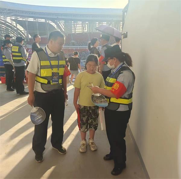 勤務(wù)實(shí)施前,大隊(duì)成立了大隊(duì)長(zhǎng)王向煜任組長(zhǎng)的安全保衛(wèi)工作領(lǐng)導(dǎo)小組,其他成員依照方案抽調(diào)執(zhí)勤力量,明確任務(wù)分工。勤務(wù)當(dāng)天下午,各執(zhí)勤單位提前到達(dá)預(yù)定位置集結(jié)到位,整理隊(duì)伍分發(fā)裝備,按時(shí)進(jìn)入執(zhí)勤崗位。除安排20人編入應(yīng)急機(jī)動(dòng)隊(duì)外,其余負(fù)責(zé)D1和E1區(qū)觀眾席的秩序維護(hù)。面對(duì)炎炎烈日,大家毫無怨言,依然堅(jiān)守崗位,對(duì)具體崗位任務(wù)落實(shí)到具體人員。給群眾提供了力所能及的幫助。下午6點(diǎn)半,李會(huì)芳發(fā)現(xiàn)一女孩啼哭不止,便上前詢問。當(dāng)?shù)弥⑹桥c家長(zhǎng)走失時(shí),報(bào)告帶隊(duì)領(lǐng)導(dǎo)尚斌,并幫她打電話聯(lián)系到家長(zhǎng),使其與家人團(tuán)聚。