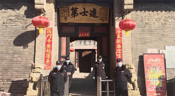 馬氏莊園位于安陽市西部20公里的西蔣村,是清代廣東巡撫 馬丕瑤的府第,是全國(guó)重點(diǎn)文物保護(hù)單位,國(guó)家AAAA級(jí)旅游景區(qū),全國(guó)紅色旅游經(jīng)典景區(qū),河南省廉政教育基地。由于春節(jié)長(zhǎng)假前來游覽的人數(shù)劇增,人防二大隊(duì)?wèi)?yīng)約擔(dān)負(fù)了馬氏莊園節(jié)日期間安保工作。為確保任務(wù)的圓滿完成,大隊(duì)領(lǐng)導(dǎo)班子十分重視,指派李伏林中隊(duì)長(zhǎng)帶隊(duì),挑選形象好、責(zé)任心強(qiáng)的隊(duì)員參加。隊(duì)員們認(rèn)真履職維護(hù)現(xiàn)場(chǎng)秩序,為行動(dòng)不便和需要幫忙的游人提供幫助,贏得了群眾的好評(píng),展示了洹河保安良好形象。