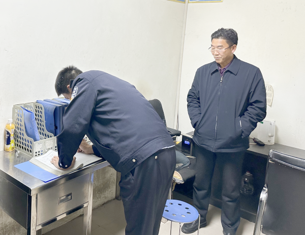 3月1日下午,內(nèi)黃縣公安局治安大隊(duì)民警李法成、馬會(huì)堂到守押九大隊(duì)檢查槍彈安全情況,大隊(duì)領(lǐng)導(dǎo)吳玉新陪同檢查。