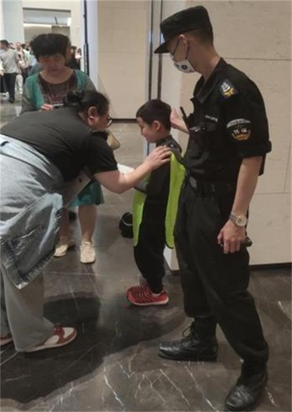 5月1日下午15:00左右,特保隊(duì)員郭凱鵬巡邏時(shí)發(fā)現(xiàn)一位兒童臉上滿是恐慌和焦慮,于是上前詢問,得知是與家長走散,于是一邊安撫一邊詢問家長聯(lián)系方式,并與家長取得聯(lián)系,幾分鐘后家長到殷墟博物館大廳認(rèn)領(lǐng)孩子。
