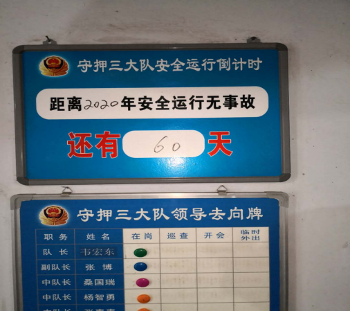 11月2日早7點(diǎn)20分,守押三大隊(duì)全員隊(duì)列整齊,在進(jìn)行例行晨會(huì)。晨會(huì)上,大隊(duì)指著隊(duì)部門口懸掛的大隊(duì)安全運(yùn)行倒計(jì)時(shí)警示牌指出,離全年過(guò)去還有不到60天,全體隊(duì)員要保持良好工作作風(fēng),繼續(xù)嚴(yán)守各項(xiàng)規(guī)章制度和守押安全操作指南,繼續(xù)嚴(yán)格遵守防疫措施,為安全順利完成全年大隊(duì)工作目標(biāo)繼續(xù)努力。