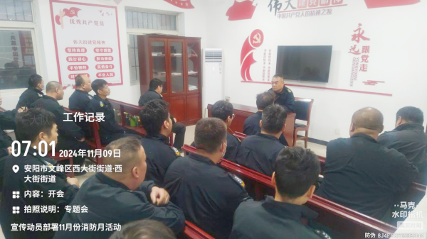 2024年11月9日是第33個(gè)全國消防日,守押一大隊(duì)積極響應(yīng)公司關(guān)于加強(qiáng)消防安全管理的指示精神,組織召開消防安全月動(dòng)員大會(huì),旨在全面提高全員消防安全意識(shí)和應(yīng)急處置能力,進(jìn)一步筑牢安全防線。