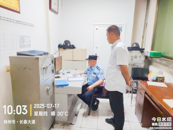 7月17日上午10時,安陽市公安局治安支隊民警郭慶林一行到守押七大隊檢查槍彈安全工作。