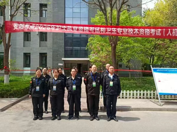 2026年護(hù)士執(zhí)業(yè)資格考試和衛(wèi)生技術(shù)資格考試在安陽市職業(yè)技術(shù)學(xué)校舉行。本次考試于4月11日—4月26日分三批、共六天開展,考生約 3.2 萬人次。為確??紙鲋刃蚓?、考試流程平穩(wěn),技防分公司抽調(diào)11名安保人員,圓滿完成此次安保執(zhí)勤任務(wù)。