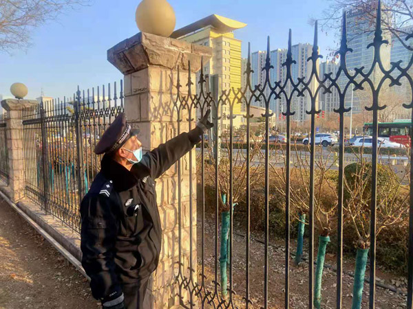 牛年春節(jié)臨近,為度過一個安寧祥和的新春佳節(jié),人防二大隊提前安排布局,做了周密的準備工作。近一周來,該大隊主管隊伍管理和崗點建設的干部,深入基層崗點查崗查哨,了解隊伍思想動態(tài),就進行節(jié)前安全隱患大排查提出具體要求,叮囑隊員站在講政治的高度,堅守崗位,認真履行職責,把各項安全措施落到實處。守土有責,守土盡責,嚴格執(zhí)行門衛(wèi)管理制度,搞好消毒滅殺,講究個人衛(wèi)生,切實做好疫情防控工作,確保不發(fā)生任何安全責任事故和疫情防控失職行為。圖為隊員在進行安全隱患排查。