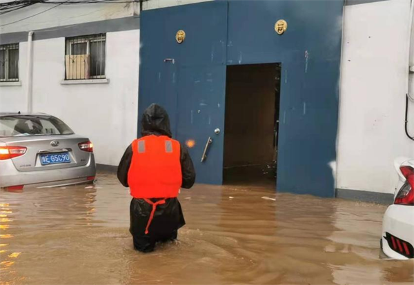2021年7月22日早上7點(diǎn)左右,安陽(yáng)幸福路工行憑證庫(kù)房值班隊(duì)員告急,由于下雨急,積水深,庫(kù)房有雨水倒灌情況。鄭芳軍隊(duì)長(zhǎng)接到救援電話后,憑證庫(kù)房是工行的票據(jù)重地,汛情就是命令,立即組織6名防汛突擊隊(duì)冒著深及脖子的洪水,手拉救生繩,身穿救生衣,冒著生命危險(xiǎn)向憑證庫(kù)房挺進(jìn)。到達(dá)后,發(fā)現(xiàn)庫(kù)房門(mén)口水位上升,他們及時(shí)將票據(jù)挪到安全位置,防止浸泡受損,門(mén)口用沙袋進(jìn)行封堵,確保了憑證庫(kù)房安全。看到安全了他們又順原路冒雨淌水于晚上10點(diǎn)安全返回市行門(mén)崗。