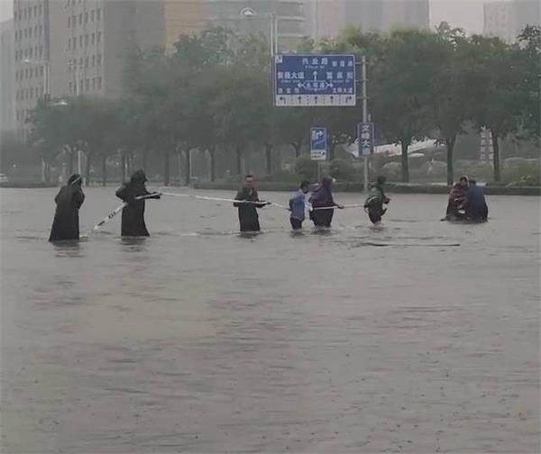 7月22日早6時許,汛情肆虐,雨越下越大,寬闊的安陽市東區(qū)文峰大道水深過膝,儼然變成了一條奔涌的河流。安陽市事務(wù)管理局在周福林副局長的指揮下,緊急啟動防汛救災(zāi)應(yīng)急處置預(yù)案,各防汛突擊小組分工明確,責(zé)任到人,全力投入抗洪戰(zhàn)斗。在南大門值守的駐市黨政大樓保安員在中隊(duì)長戶永豐帶領(lǐng)下搬運(yùn)沙袋剛構(gòu)筑好攔水壩,還沒來得及歇口氣,忽然聽到一女子“救命”的呼救聲。隊(duì)員們循聲望去,只見路上洶涌的激流中沖過來一個人,那人想站又站不起來,在水中翻滾著由西向東順流而下。