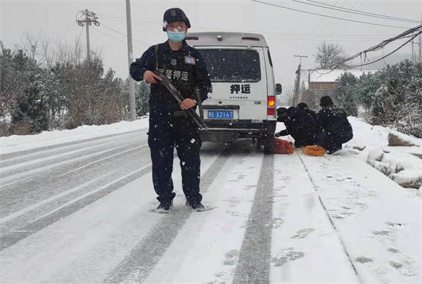 清晨,為確保款箱準時送到各營業(yè)網(wǎng)點,他們冒雪按時出發(fā)。滿天的飛雪,昏暗街區(qū),濕滑的道路,讓押運車輛行進艱難,各車組按照雨雪天工作預案要求認真執(zhí)行勤務。時值中午,雪越下越大,東姚、原康、桂林、橫水線路路面已經(jīng)積雪嚴重。橫水線路在行駛至采桑路段時,車長李增華看到積雪的路面,果斷將車輛停下,按照預案加裝防滑鏈。車組成員在他的指揮下,快速安裝好輪胎防滑鏈繼續(xù)前行。東姚線路和桂林線路也在押運途中適時將車輛加裝好防滑鏈,確保車輛安全運行。