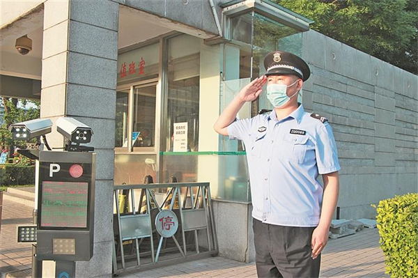 5月16日,戶永豐在市黨政綜合樓門崗值勤。
