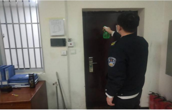 隨著新冠肺炎疫情的發(fā)展,守押九大隊領(lǐng)導和全體隊員在這場看不見硝煙的戰(zhàn)場上,迎難而上,共抗疫情。對領(lǐng)導首要時間將上級防范、控制疫情的精神傳達到隊員,鼓舞隊員抗擊疫情的士氣,并將防控疫情的方法發(fā)送到大隊工作群,教育隊員提高認識,做好防范。當酒精、口罩、84消毒液這些防護用品在市場大面積斷貨的情況下,為加強隊員的保護,避免交叉感染,隊員岳兆宇得知大隊消毒水用完的時候,2月4日,首要時間主動把自己家里用的酒精拿來,將大隊所有車輛及守庫室認真仔細消毒一遍。此后每天出車前后,他都主動為大隊車輛、守庫室兩次消毒。隊員張一博主動從自家?guī)砑t外線測量體溫儀器,每天都在點名前主動為大家測量體溫。雖然疫情無情,但守押九大隊有溫情,大隊領(lǐng)導和全體隊員團結(jié)一致,眾志成城,助力打贏疫情防控阻擊戰(zhàn)。