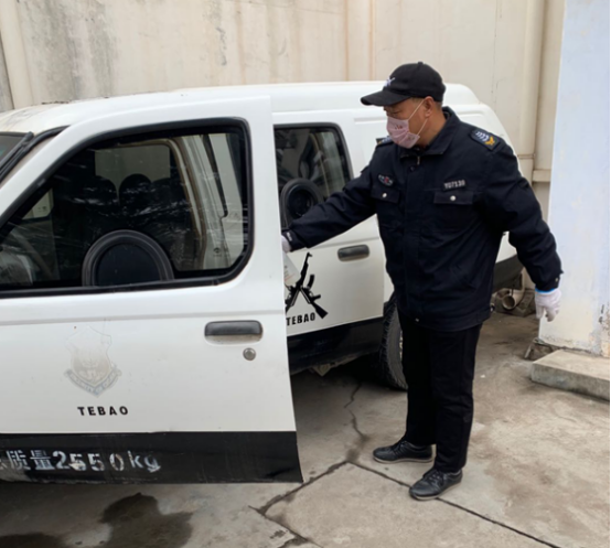 李小強(qiáng),守押七大隊(duì)臨淇中隊(duì)的一名普通的隊(duì)員,擔(dān)任臨淇中隊(duì)中隊(duì)長。疫情爆發(fā)以來,為了隊(duì)友的安全,他主動承擔(dān)了對全體隊(duì)員摸排的任務(wù)。他每天不厭其煩,挨個打電話,核實(shí)22名隊(duì)員情況,每日將隊(duì)員有無外出;有無發(fā)熱、咳嗽癥狀;有無與武漢來安的親戚朋友接觸等信息匯總后上報(bào)大隊(duì)。在做好這些工作的同時,他還在微信群中發(fā)送防控疫情蔓延的小知識,做好疫情防控的宣傳教育工作。為確保隊(duì)員不感染病毒,他每天提前到單位,在出車前,對運(yùn)鈔車進(jìn)行消毒。隊(duì)員上崗前,他認(rèn)真測量隊(duì)員體溫,檢查隊(duì)員自我防護(hù)情況。收車后,在別人都已經(jīng)下班后,他再次對守庫室、槍庫、槍柜進(jìn)行消毒,確保隊(duì)員疫情期間工作安全。隊(duì)友都親切地稱他是“平安的守護(hù)者?!眻D為李小強(qiáng)同志在疫情期間做消毒工作。