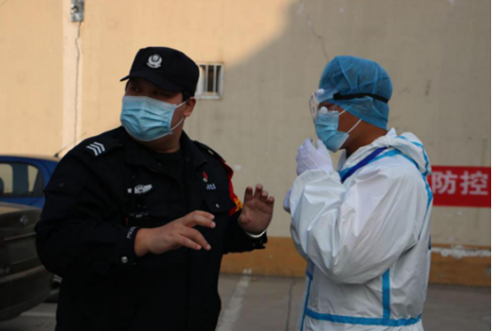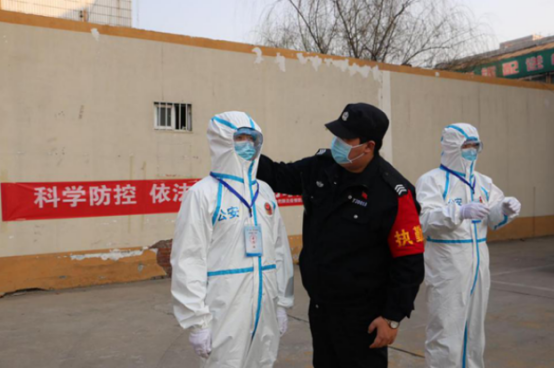 1月23日(臘月二十九),臨近春節(jié),輔警中隊(duì)忙著執(zhí)勤,保障春節(jié)期間的社會平安。李鑫和隊(duì)員白天站崗,晚上帶隊(duì)巡邏,已經(jīng)處于連軸轉(zhuǎn)的狀態(tài)。就在此時,更艱巨的任務(wù)已經(jīng)在等待他們。1月24日(除夕)夜,華強(qiáng)城小區(qū)發(fā)現(xiàn)疫情,分局指令輔警中隊(duì)迅速趕往華強(qiáng)城小區(qū),執(zhí)行警戒任務(wù)。李鑫二話不說,帶領(lǐng)當(dāng)值特保(輔警)隊(duì)員,趕到執(zhí)勤地點(diǎn)。個人防護(hù)用品不夠,李鑫讓隊(duì)員先用上,自己開車到家,把愛人為自己家庭準(zhǔn)備的口罩和酒精帶到執(zhí)勤點(diǎn),緩解了防護(hù)用品缺乏的情況。待到分局防護(hù)物品送到前,現(xiàn)場所有執(zhí)勤隊(duì)員已經(jīng)按照要求做好防護(hù),執(zhí)行勤務(wù)。分局楊局長夸獎輔警中隊(duì)“到位迅速,防護(hù)嚴(yán)密,心中有警”。