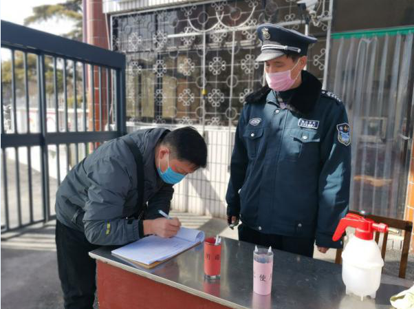 圖為對進(jìn)入人員測量體溫,進(jìn)行信息登記。