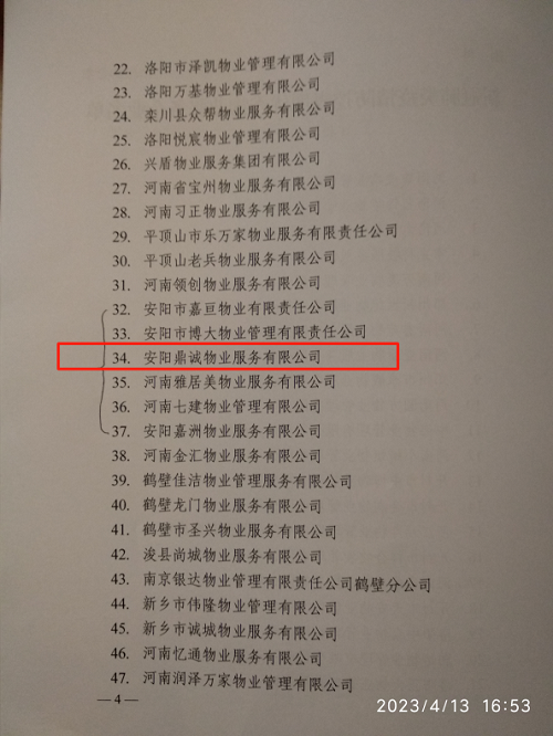 4月8日,河南省住房和城鄉(xiāng)建設(shè)廳通報(bào)表?yè)P(yáng)了全省新冠肺炎疫情防控工作表現(xiàn)優(yōu)秀的122家物業(yè)服務(wù)企業(yè),安陽(yáng)鼎誠(chéng)物業(yè)服務(wù)有限公司榜上有名。