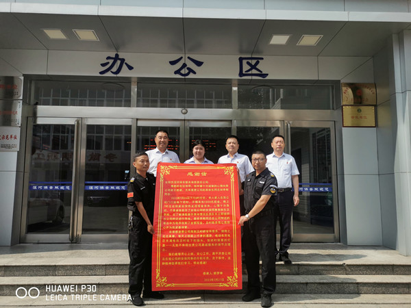 7月31日下午3:00,一位女士激動地來到公司,將一封感謝信送到公司副總經(jīng)理孫國濤,技防分公司經(jīng)理李玉祥手中,感謝保安隊員袁秋生和李輝撿到現(xiàn)金并及時歸還。