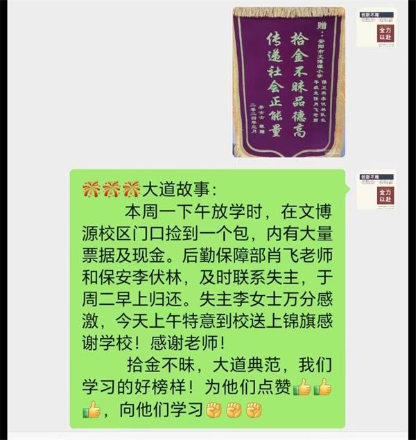連日來(lái),李伏林同志和肖飛老師積極尋找失主、物歸原主的事情傳為美談。