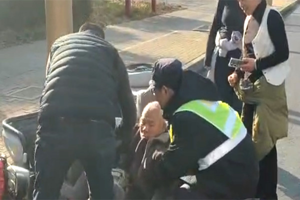 1月13日14時50分許,人防二大隊龍安區(qū)政法委巡防隊隊員整裝待發(fā),即將開展反詐宣傳大巡邏工作,突然發(fā)現(xiàn)政府南門西門崗西側,一位老人騎行三輪車不慎側翻,身體被困車旁,情況十分緊急。