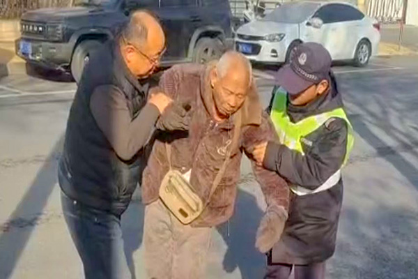 危急關頭,中隊長孫國彬與隊員李佳琦第一時間快步上前,一邊輕聲安慰老人別慌張,一邊小心翼翼地將老人扶起。隨后,兩人合力將側翻的三輪車抽起。待老人情緒平復后,孫國彬耐心詢問其身體感受及受傷情況,確認老人身體無恙,且能自行騎行離開后,又叮囑老人騎行途中務必注意安全、減速慢行。