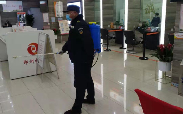 近期,多地新冠肺炎疫情出現(xiàn)多點、零星、散發(fā)態(tài)勢,根據(jù)上級要求,人防一大隊駐鄭州銀行保安班在中隊長司留志帶領(lǐng)下,積極響應(yīng)銀行防疫工作要求,做好疫情防控工作。隊員每天做好個人衛(wèi)生,佩戴口罩上崗。他們認(rèn)真測量進(jìn)入銀行辦理業(yè)務(wù)的每位客戶體溫,提醒客戶佩戴口罩、登記信息。銀行下班后,隊員對銀行營業(yè)廳對外服務(wù)窗口進(jìn)行全面消毒,為到銀行辦業(yè)務(wù)的客戶創(chuàng)造了一個安全的環(huán)境,受到客戶單位主要領(lǐng)導(dǎo)的夸獎。