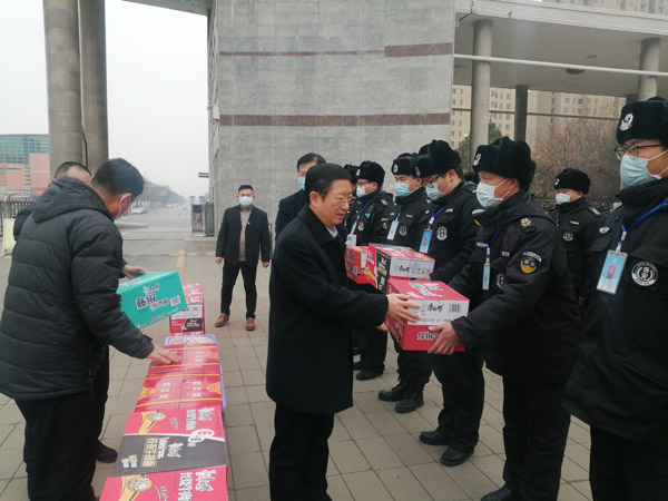 1月15日上午,安陽工學(xué)院校長景國勛一行,帶著方便面、蘋果、橘子等慰問品,來到人防三大隊(duì)派駐工學(xué)院保安班駐地慰問堅(jiān)守在一線執(zhí)勤的隊(duì)員。人防三大隊(duì)領(lǐng)導(dǎo)王武魁、聶紹軍、閆永勝參加了慰問活動(dòng)。