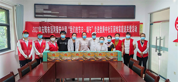 端午佳節(jié)寓意祈求健康、防疫祛病、避瘟驅(qū)毒,是傳承中華文化、展現(xiàn)民俗魅力的好時(shí)節(jié)。為確保居民度過(guò)一個(gè)歡樂祥和的端午節(jié),洹河保安公司開展“我們的節(jié)日·端午”走進(jìn)盤庚中社區(qū)困難家庭送關(guān)愛志愿服務(wù)活動(dòng)