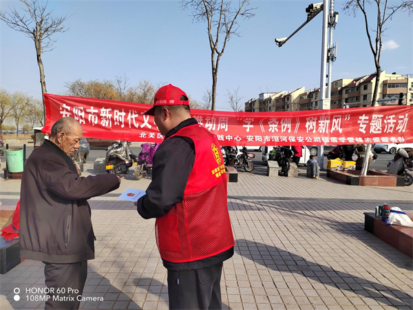 為大力培育和弘揚社會主義核心價值觀,引導(dǎo)廣大群眾樹立文明觀念,3月3日下午,公司組織志愿者來到平原橋法治廣場開展安陽市新時代文明實踐推動周“學(xué)條例 樹新風(fēng)”《安陽市文明行為促進條例》集中宣傳活動。