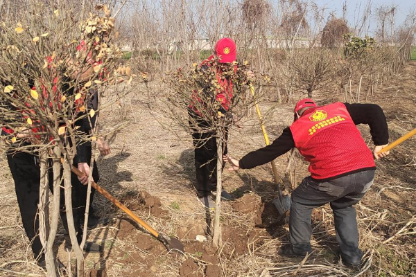 活動現場,大家分工協作,干勁十足,手拿水桶,肩扛鐵鍬,三五人一組,揮鍬鏟土、扶樹正苗、澆水灌溉,每個環(huán)節(jié)銜接有序、認真細致,大家熱情高漲,忙的不亦樂乎,幾小時熱火朝天的勞動后,看著生機勃勃的樹苗,讓大家倍感充實和愉悅。
