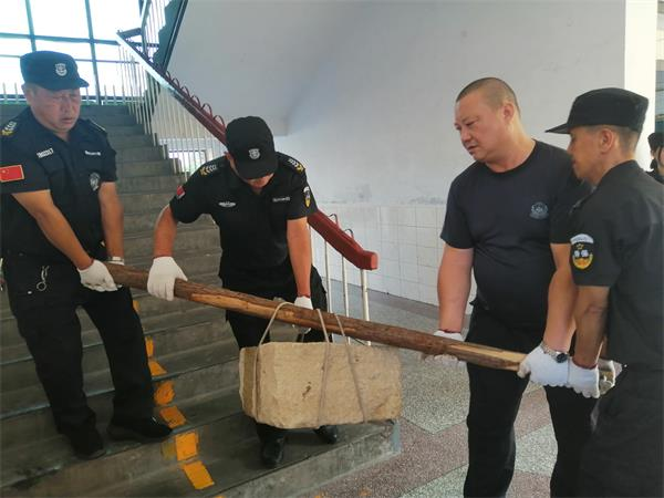 由于該校教學(xué)樓上遺留有一定數(shù)量的花池、石塊、石槽、建筑塊、水泥塊、地板、磚等物,校方排查存在安全隱患,需要把樓頂?shù)臇|西清運下來。按照支部組織謀劃安排,當(dāng)日上午8點半,在黨員、中隊長劉宇,預(yù)備黨員、副中隊長楊承濤帶領(lǐng)下,同志們齊心協(xié)力、相互配合,采取接力方式向下轉(zhuǎn)運。有的一塊石頭有二三百斤,他們就用繩子捆住向下抬,一個個累得汗流浹背,但沒有一個人叫苦叫累,張運洲邊干邊反復(fù)提醒大家注意安全。他們利用一上午時間,把大部分體積較大的石塊、石板、地磚等物安全清理下樓,又把清運堆積在樓道的東西,搬運到200米外的樓后隱蔽處。